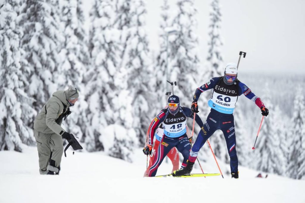 En premier relayeur, Léo Carlier lançait idéalement son équipe. Trois pioches pour le Jurassien qui passait le relais à Camille Grataloup-Manissolle en tête avec une quinzaine de secondes d’avance sur la concurrence. De son côté, le Dauphinois n’est pas passé loin de la correctionnelle en utilisant ses trois pioches dès le couché. Relégué à 23 secondes de la Norvège, il en perdait quelques-unes de plus après une erreur au debout. Après un dernier tour difficile dans une neige qui brassait énormément, la France se retrouvait en troisième position à mi-parcours, à plus d’une minute de l’Estonie et de la Norvège.