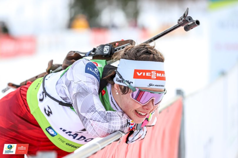 Sur la course féminine, l’Autriche a également été à la fête avec un fantastique triplé. Déjà vainqueure la veille, Anna Andexer s’impose largement, et ce, malgré une erreur au tir. Sa compatriote Wilma Anhaus (9/10 au tir) prend la deuxième place à 1 minute 31 secondes, deux dixièmes devant sa coéquipière Lara Wagner (8/10), troisième.