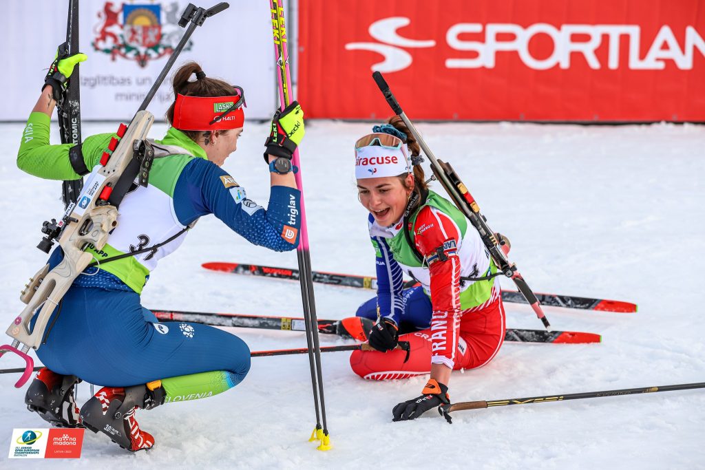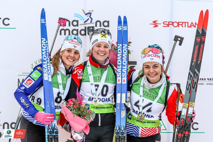 Derrière l’Autrichienne Lea Rothschopf, Léonie Jeannier et Camille Coupé complètent le podium de l’individuel des championnats d’Europe juniors de Madona.