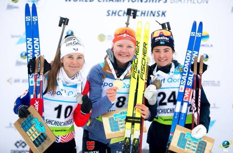 À l’image de Johannes Boe en Coupe du Monde, Selina Grotian domine littéralement les débats à ski sur cette quinzaine mondiale. L’Allemande relègue à plus d’une minute la quasi-totalité de ses adversaires à ski, à l’exception de la fusée tricolore Anaëlle Bondoux, qui n’accuse que trente secondes de retard. Résultat, avec deux fautes derrière la carabine, Selina Grotian s’impose avec près d’une minute d’avance ! De bon augure pour s’offrir à minima une médaille sur la poursuite. Grâce à leurs résultats au fil de la saison, les Allemandes soulèvent le globe de la coupe des nations.